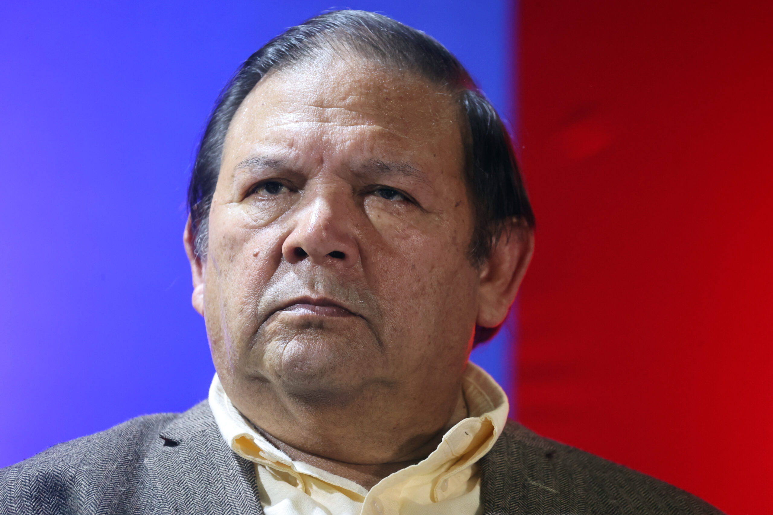 AME8089. CARACAS (VENEZUELA), 04/08/2023.- El precandidato presidencial opositor Andrés Velásquez participa en un acto político conjunto de la oposición, hoy, en Caracas (Venezuela). Los 13 candidatos a las primarias opositoras del 22 de octubre, que definirán al abanderado que se enfrentará al chavismo en las presidenciales de 2024, firmaron este viernes un documento con los «principios comunes» que regirán su programa de Gobierno, en caso de ganar los comicios del próximo año. El acuerdo suscrito establece que el país «debe avanzar en cambios que consoliden un nuevo modelo político, económico y social», siempre que sea «sobre la base de unos principios comunes, a partir de los cuales la candidatura unitaria (quien resulte vencedor en octubre) diseñará su programa de reformas estructurales». EFE/ Miguel Gutiérrez