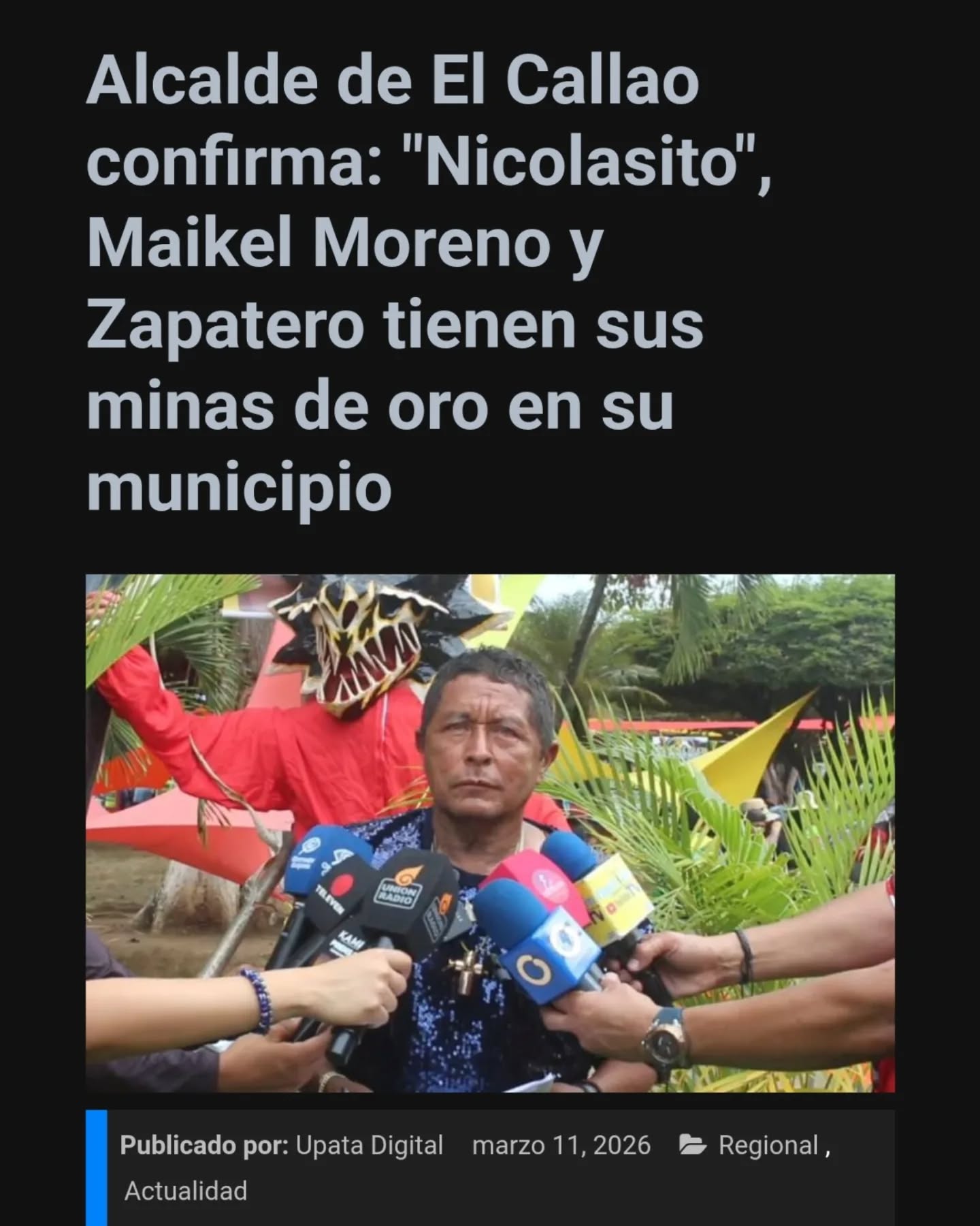 🗣️ «Él también está metido (Maduro Guerra). Si está metido el papá, tiene que estar metido el hijo. Toditos están enchufados. El oro de El Callao es el 70 por ciento de la producción de Venezuela. El oro de El Callao es un atractivo grande, por eso es que todos se mudaron para acá. A Maikel Moreno lo conocí en la plaza», expresó Lugo durante la entrevista con el periodista Enler García, sin ofrecer más detalles sobre esas dos figuras políticas ni especificar a qué nivel son los vínculos con alguna alianza minera.