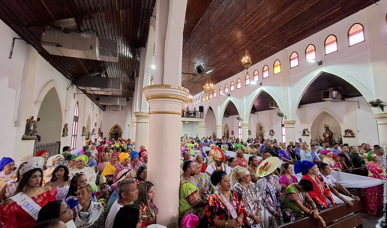 La eucaristía, oficiada por monseñor Carlos Cabeza, obispo de Ciudad Guayana, contó con la presencia de más de 200 madamas que llenaron de colorido el recinto. Sin embargo, la disposición de las autoridades en el templo fue inédita: de un lado de la nave central se ubicó la gobernadora del estado Bolívar, Yulisbeth García, junto a su tren ejecutivo; del otro, el alcalde Coromoto Lugo, acompañado por su equipo y una nutrida representación del pueblo callaoense.