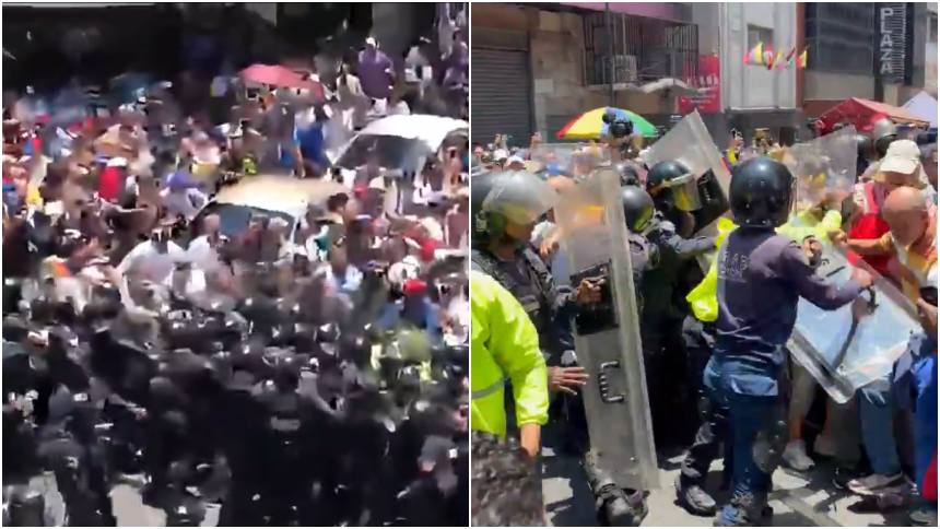 «Cuerpos represores del régimen venezolano agreden al gremio de trabajadores y estudiantes en su justa lucha por sus reivindicaciones salariales y estudiantiles en las inmediaciones de Miraflores», reportó la Cuenta de VIVA UCV.