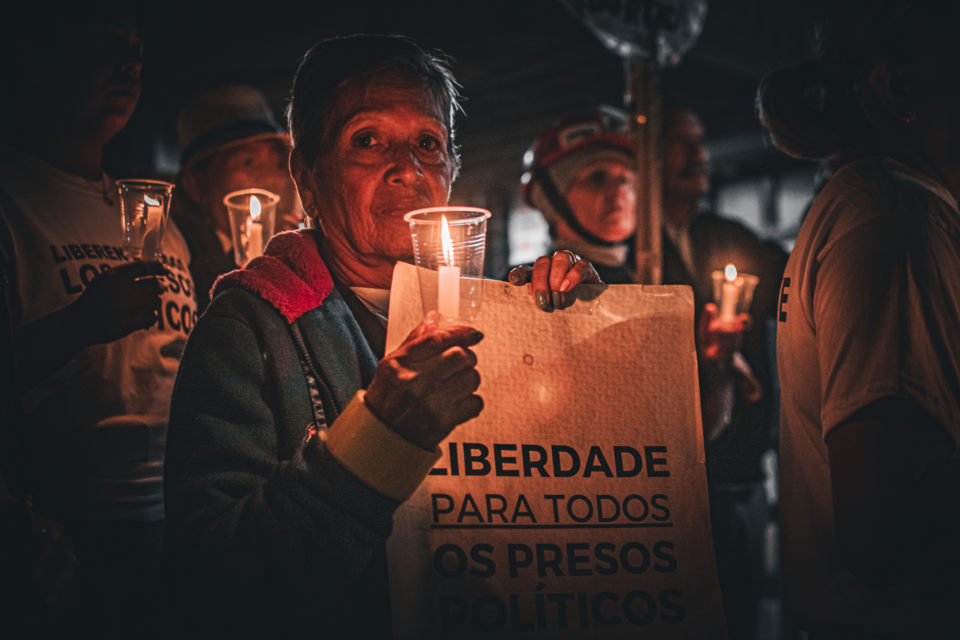 «Hay libertades políticas. Exigimos la liberación de ellos y de todos los presos políticos que están detenidos injustamente”, pide Nelsy en medio de la vigilia. Su clamor se volvió coro: «libertad, libertad, libertad». Luego, otro grito: «ninguno es delincuente, todos son inocentes».