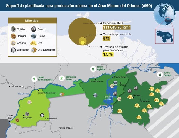 En los 245 mil kilómetros del estado Bolívar, el Arco Minero, es vital en ese marco; no sólo es el oro, son los minerales no metálicos como el granito, la arena, entre otros, por eso es sumamente importante preparar propuestas, agregó.