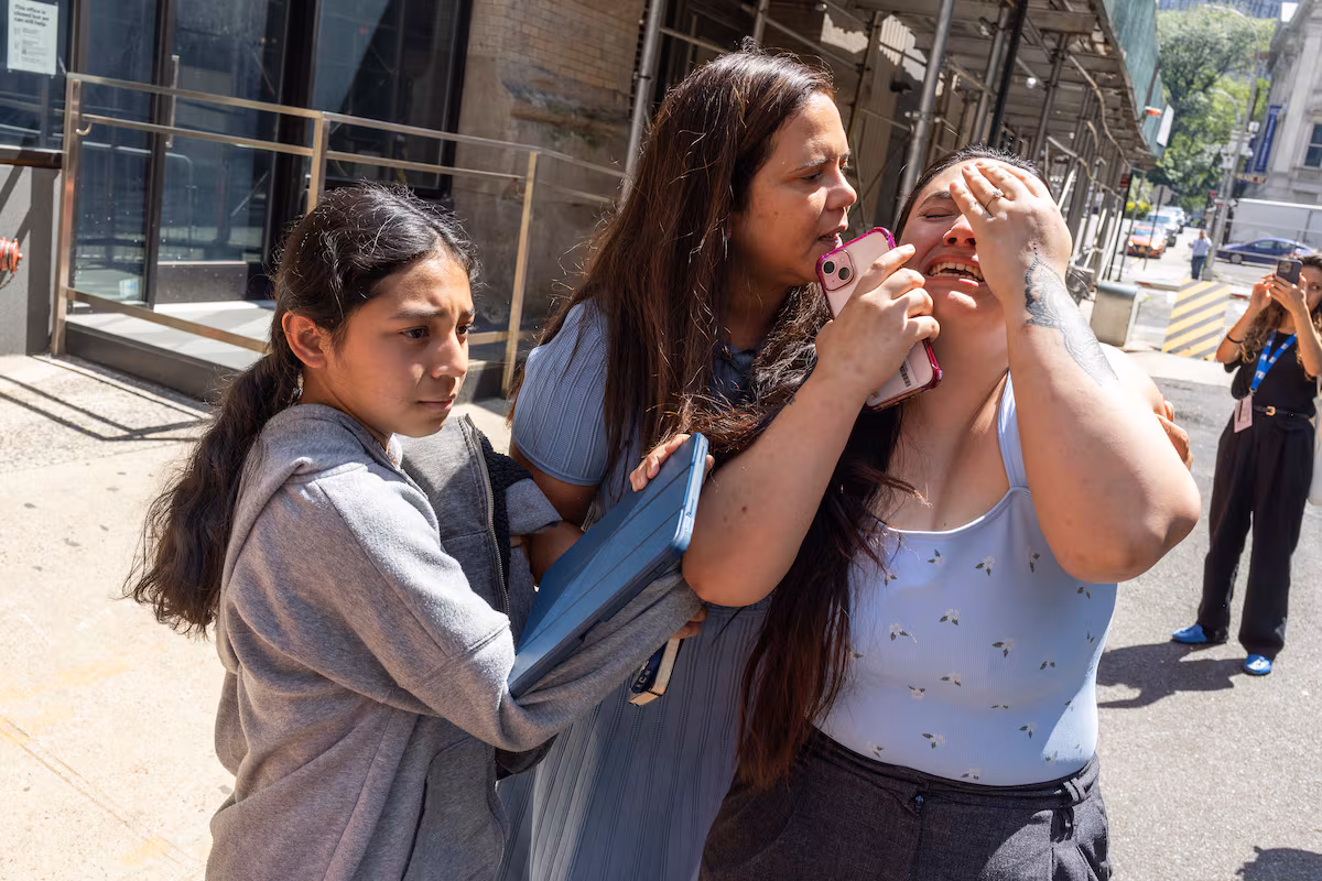 Una mujer tras enterarse de que su marido ha sido detenido por agentes del ICE, el 4 de junio de 2025, en Nueva York.Andrew Lichtenstein (Getty Images)