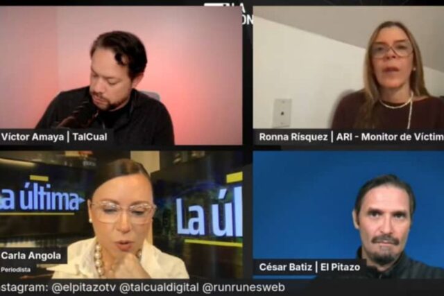 En el programa titulado EEUU – Venezuela: ¿Cuáles opciones están sobre la mesa? también participaron Ronna Rísquez, directora de ARI, Víctor Amaya, director del TalCual y César Batiz, director de El Pitazo.