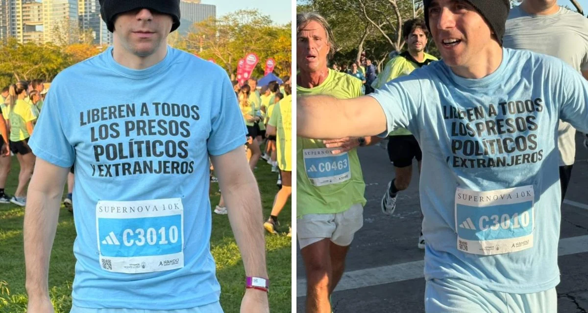 «Hoy corro con el motivo de que todavía están presos políticos en Venezuela, tanto extranjeros como venezolanos. Mi petición es la misma de siempre: yo todavía me siento encerrado porque hasta que no vea que todos están libres no me voy a quedar tranquilo», expresó Gallo, quien pasó 448 días secuestrado por el chavismo en Venezuela antes de recuperar su libertad.